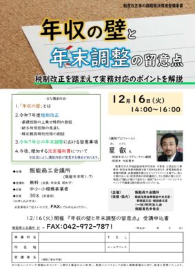 「年収の壁と年末調整の留意点」セミナー開催のお知らせ